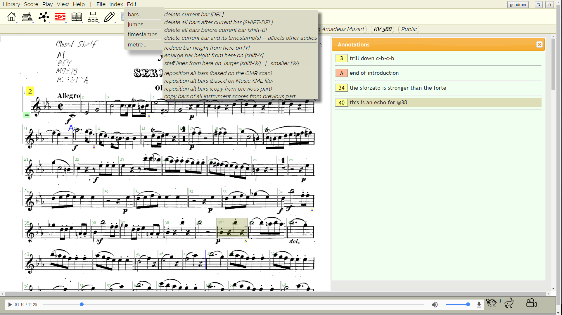 position will be highlighted (in this case: measure 40).