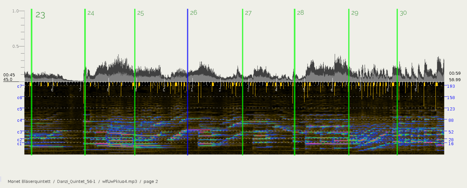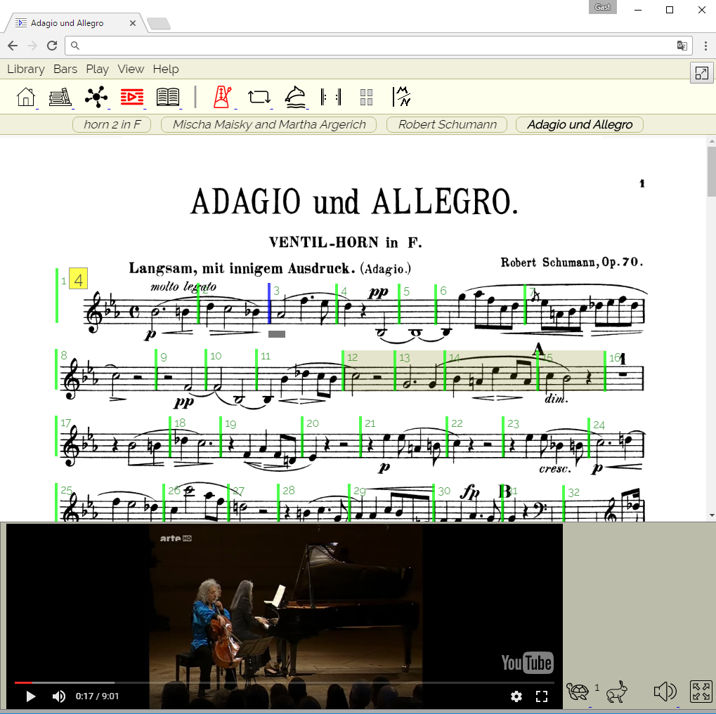 Our example shows the horn score together with a cello recording.
