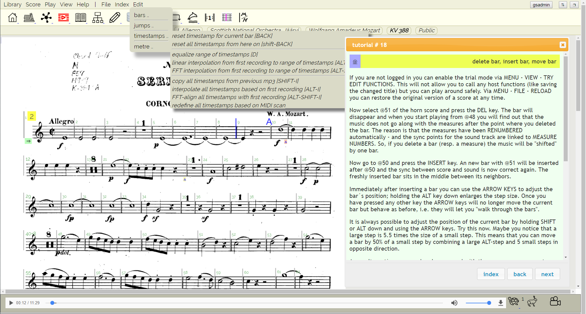 FTS presents music scores and audio recordings in sync.